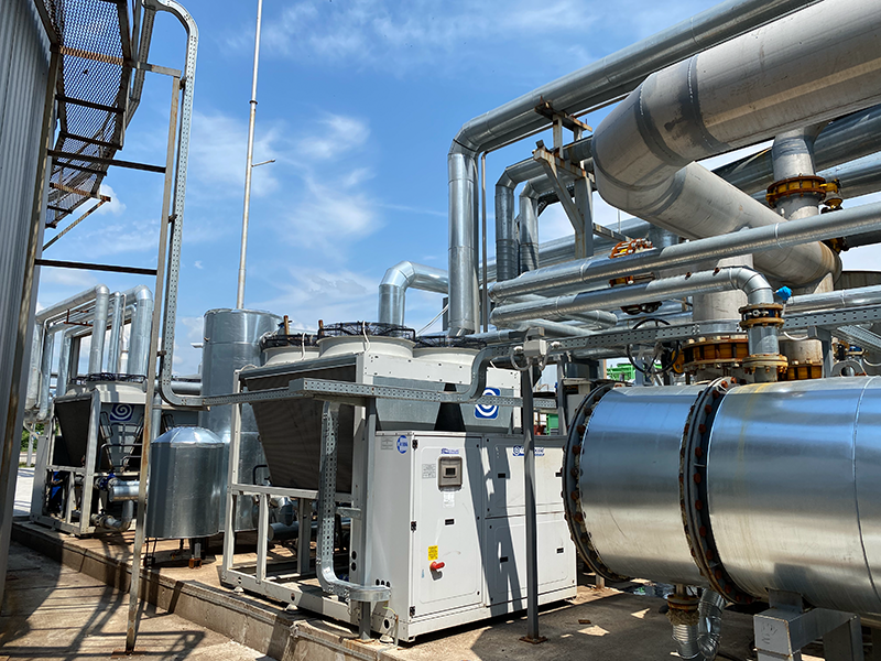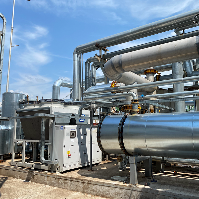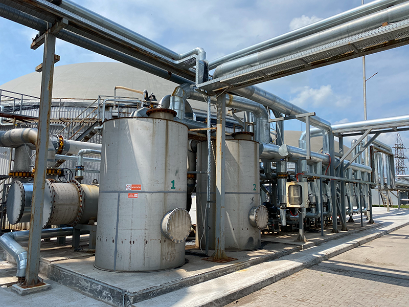 Біогаз, що утворюється в процесі зброджування, дуже вологий, а надмірна вологість знижує ефективність спалювання біогазу в котлах та/або генераторах. Навіть низька концентрація H2S у поєднанні з високою вологістю біогазу може значно збільшити корозію пристроїв і труб біогазової мережі. Тому біогаз необхідно осушувати.Осушення (очищення біогазу) здійснюється за допомогою чилера, який охолоджує біогаз, викликаючи конденсацію вологи. Конденсат відокремлюється в уловлювачі, що встановлений після чилера, і відводиться через сифон. Такий метод не тільки ефективно видаляє вологу, а й забезпечує його необхідну температуру.