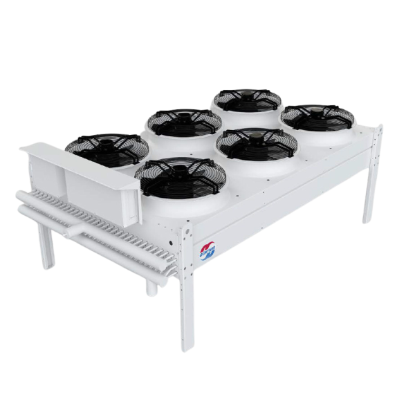 Вертикальний драйкулер серії GFHV призначений для охолодження за допомогою повітряного потоку. Він оснащений двома вентиляторами і міцним корпусом з оцинкованої сталі з порошковим покриттям, що забезпечує довговічність і стійкість до корозії.