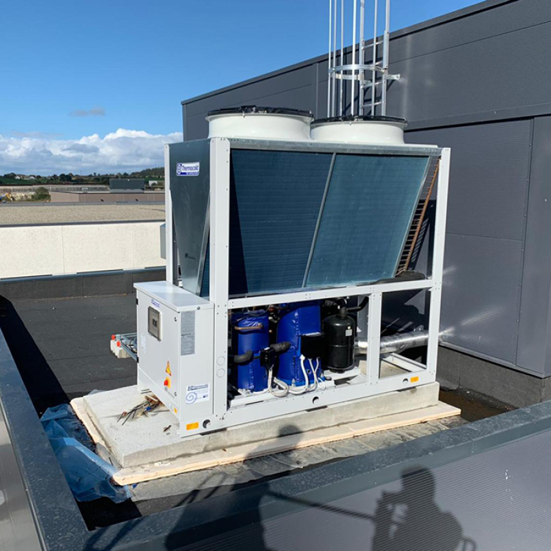 - Випарник із неіржавкої сталі AISI 316 паяний пластинчастий із зовнішньою ізоляцією, у комплекті з реле перепаду тиску та електронагрівачем для захисту від замерзання;