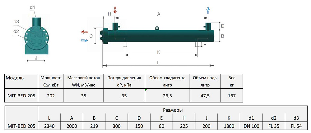 Кожухотрубний випарник одноконтурний MIT-BED 205